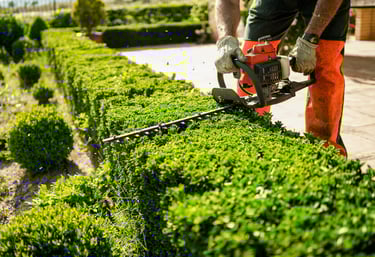 Präzises Schneiden von Hecken und Sträuchern für eine ansprechende Gartenästhetik und Gesundheit.
